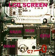 Locate the "C7" capacitor, it's at the bottom of the CPU. It